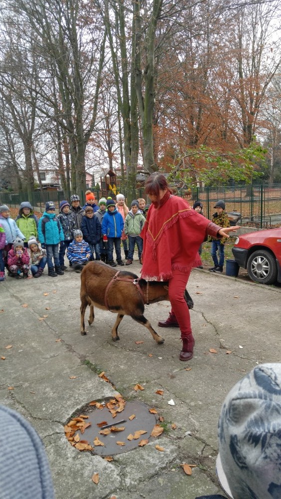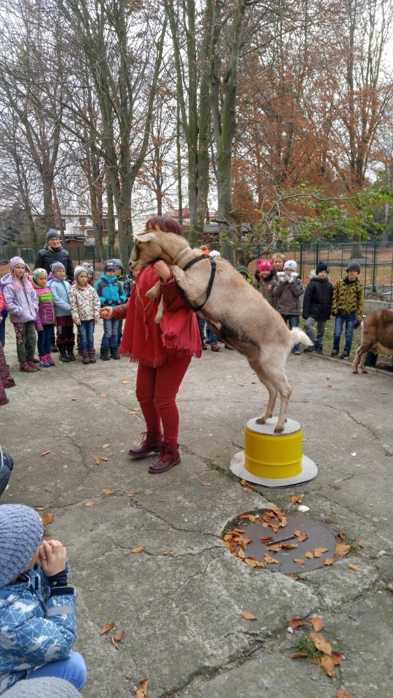 Ve středu 21. 11. jsme měli ve školní družině zvláštní návštěvu. Na zahradě děti přivítaly kozu Jůlinku, Elenku a Reginku. Děti se seznámily se životem koz, s jejich chovem a významem pro člověka. Zajímavé byly poznatky o tom, co kozám chutná, ale i to, co vůbec nemají rády. Kozy byly velmi šikovné – plnily různé naučené úkoly, svou chovatelku poslouchaly na slovo. Tancovaly, dokázaly přeskočit i kapotu auta. Zážitkem pro děti byla vycházka s kozou, její krmení a dojení. Děti si domů odnášely opravdu nevšední zážitky z prožitého odpoledne.