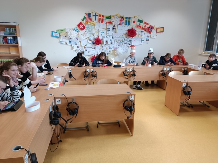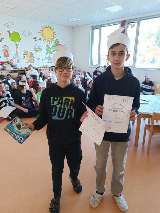 V pátek 8. prosince se sedmé ročníky naší školy účastnily na pozvání základní školy v Hrochově Týnci vánočně laděné akce „Christmas traditions“.