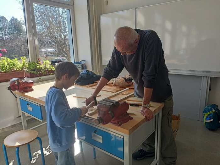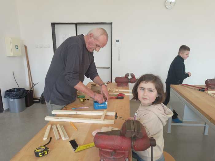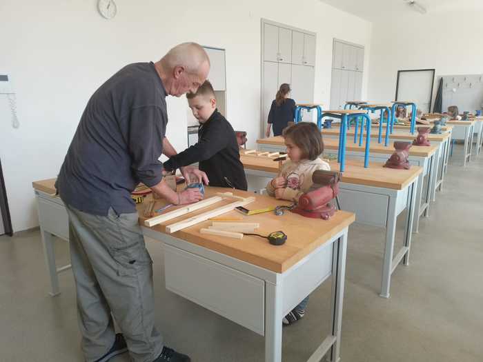 Třetí oddělení školní družiny v rámci šablon JAKu navštívil odborník na truhlařinu pan Kulhánek – dědeček dvojčátek, které družinu navštěvují. Děti se nemohly dočkat prvního setkání, ale zároveň se obávaly, co je bude čekat. Pán se dětem představil a hned oznámil, že mu mohou říkat: „dědo Kutile“. Ze začátku bylo práce a hlídání dost. Děti se musely naučit řezat, zarovnávat hrany pilníkem, zatloukat hřebíky a přesně měřit. Poznaly, že platí přísloví: „Dvakrát měř, jednou řež“, že musí být trpělivé a finální výrobek, což byl žebříček, není hned hotový. Dalším výrobkem byl nástavec na tužky a pastelky. To už děti pracovaly docela samy a „mistr“ truhlář jen dohlížel a upozorňoval na malé nepřesnosti. Děti díly projektu poznaly jedno z řemesel, zjistily, že jim i senior (děda Kutil) má co předat, po celou dobu spolupráce ho respektovaly.