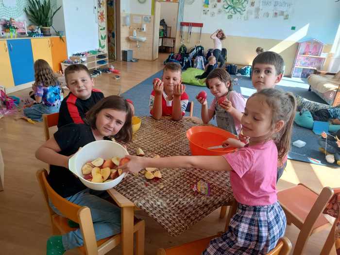 Ve všech odděleních se o jablkách vyprávělo – poznávali jsme jejich druhy, barvy a řešili jsme jejich pěstování. Samozřejmě se všude ochutnávalo.