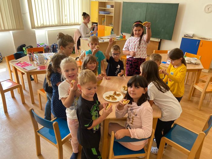 Paní vychovatelky děti společně zapojily do „jablíčkového týdne“ a to proto, aby děti poznaly různé druhy jablek, aby na vlastní jazýčky zjistily, jak ovoce chutná a co se z něj dá vyrábět.