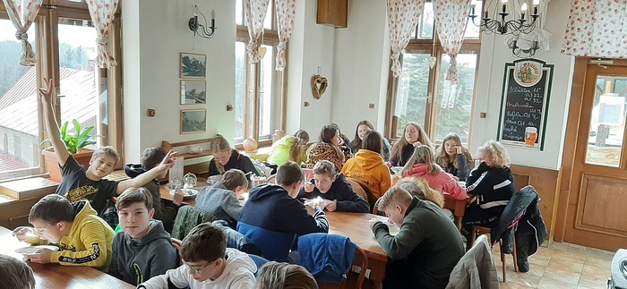 Středeční ráno bylo optimističtější, dopolední lyžařská část proběhla bez problémů. Odpolední blok jsme částečně věnovali běžeckému lyžování a navštívili stanici horské služby na běžkách. Žáci byli seznámeni s činností horské služby a technikou, která horské službě pomáhá dostat se na méně přístupná místa. Večerní program jsme věnovali společenským hrám všeho druhu.