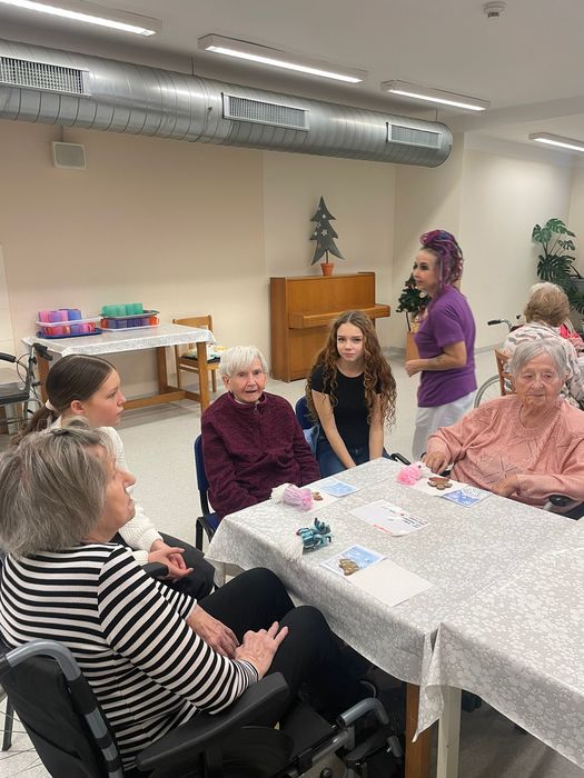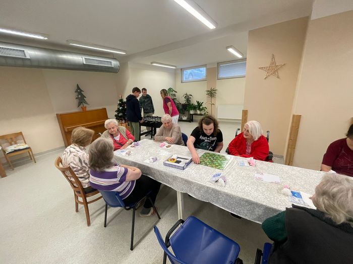 Ve středu 18.12. 2024 se uskutečnilo předvánoční setkání žáků 8.A se seniory v sanatoriu Topas v Holicích. Děti seniorům přivezly vlastnoručně vyrobená vánoční přáníčka a drobné dárky, které jim udělaly velkou radost. Po počátečních oboustranných rozpacích se děti i senioři rozpovídali. Milí a usmívající se senioři vyprávěli dětem o svém životě a společně si zahráli stolní hry. Na některých obyvatelích sanatoria bylo vidět opravdové dojetí ale i radost z možnosti si popovídat s mladou generací. Připraveno bylo pro nás drobné občerstvení a senioři nám rovněž předali drobné dárečky.