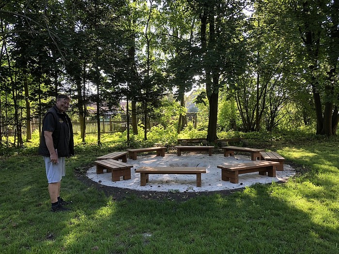 V místnostech pracovních dílen začala rekonstrukce, dodělalo se kamenné ohniště s dřevěnými lavičkami v zahradě u jídelny.