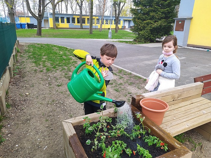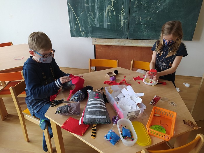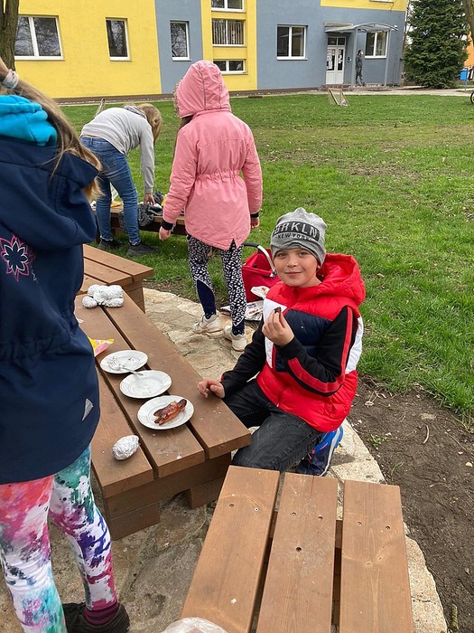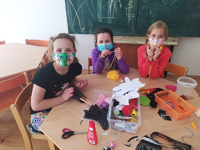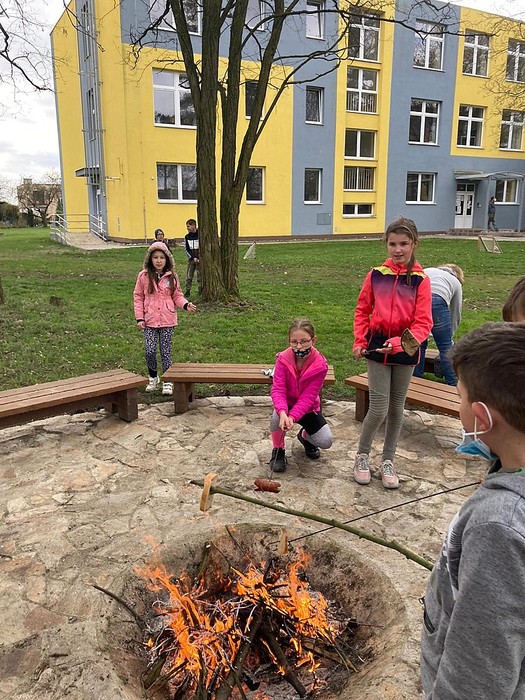 Pěkné počasí vytáhlo děti ze třetího a čtvrtého oddělení nejen na hřiště a do parku, ale také na školní zahradu, která volala po úklidu a pěkné jarní úpravě. Děti vyplely spoustu plevele a pak do vyvýšených záhonů zasadily nádherné květiny, nechybělo zasetí hrášku a ředkviček, aby bylo co k snědku. Děti také poctivě uklidily spadané klacíky a z nich pak postavily velkou dřevěnou hromadu. Odměnou bylo pečení buřtíků, brambor a chlebů. I ve třídách ŠD dívky a kluci nezahálejí a pilně šijí. Třetí oddělení si ušilo vlastního družinového maskota.
