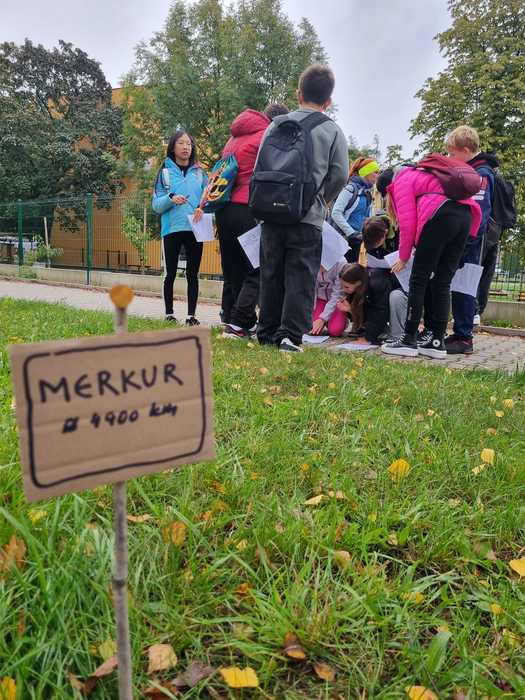 Ve čtvrtek 10. října se žáci 6.A vydali na nezapomenutelnou terénní výuku. Ponořili se do tajů sluneční soustavy a cestou k Duhovému jezeru prezentovali své planetární projekty. Přemýšleli nad tím, jak by naše sluneční soustava vypadala, kdyby mělo Slunce pouhé tři metry a podle toho rozmístili planety. Slunce tvořit nemuseli – jedno totiž máme přímo na fasádě školy! I když bylo trochu chladno, prohlašuji akci za nadmíru vydařenou.