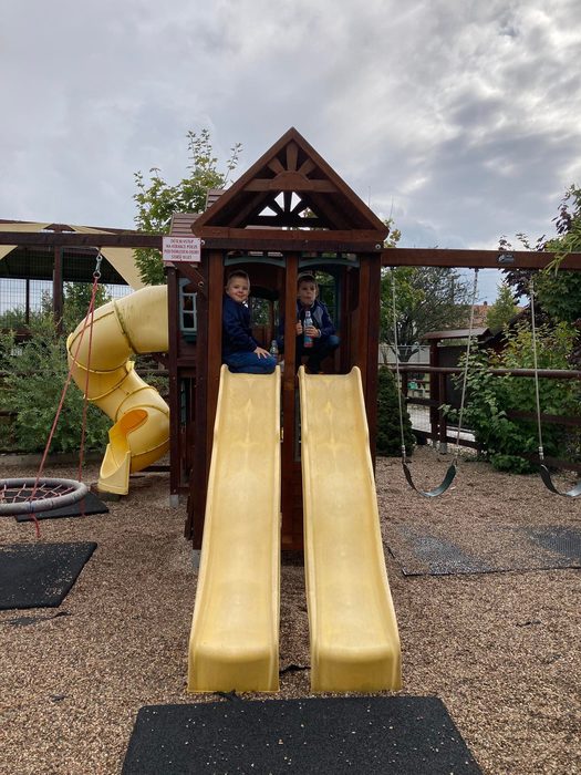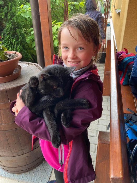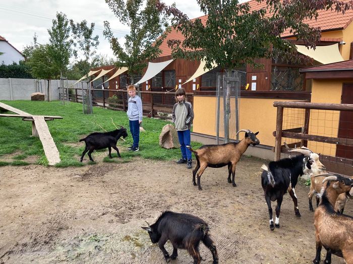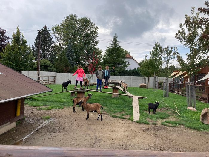 Po obědě jsme rychle nastoupili do autobusu a hurá směr Bítovany. Po projití vstupní branky ranče se děti rozběhly za svoji oblíbenou opičkou a ostatními zvířaty. Ta měla právě oběd, takže podívaná na strávníky byla skvělá a úsměvná. Zvířata se totiž ukázala opravdu zblízka a v packách si držela oblíbené pokrmy. Nákup párků v rohlíku, nanuků a suvenýrů pro vzpomínku byla samozřejmostí. Zvířátka se pak uvelebila k odpočinku, děti si zaskotačily s kozičkami a vydováděly se na hřišti. Čas rychle uběhl a výletníci vyrazili zpět k autobusu směr Dašice.