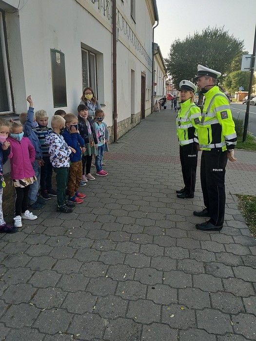 Později si děti před školou prohlédly vůz Policie ČR. Žákům se celá akce líbila, odnesli si důležité informace z praxe a pracovní sešit, který budou využívat v rámci předmětu Člověk a jeho svět.