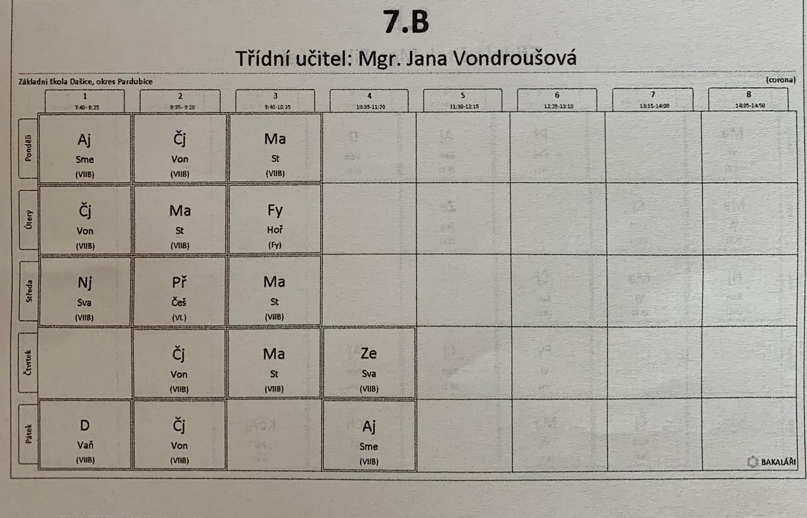 - učily se pracovat v režimu online hodin dle přiloženého rozvrhu hodin.