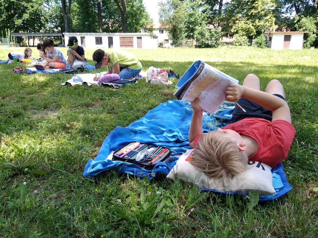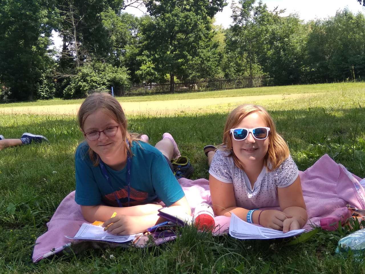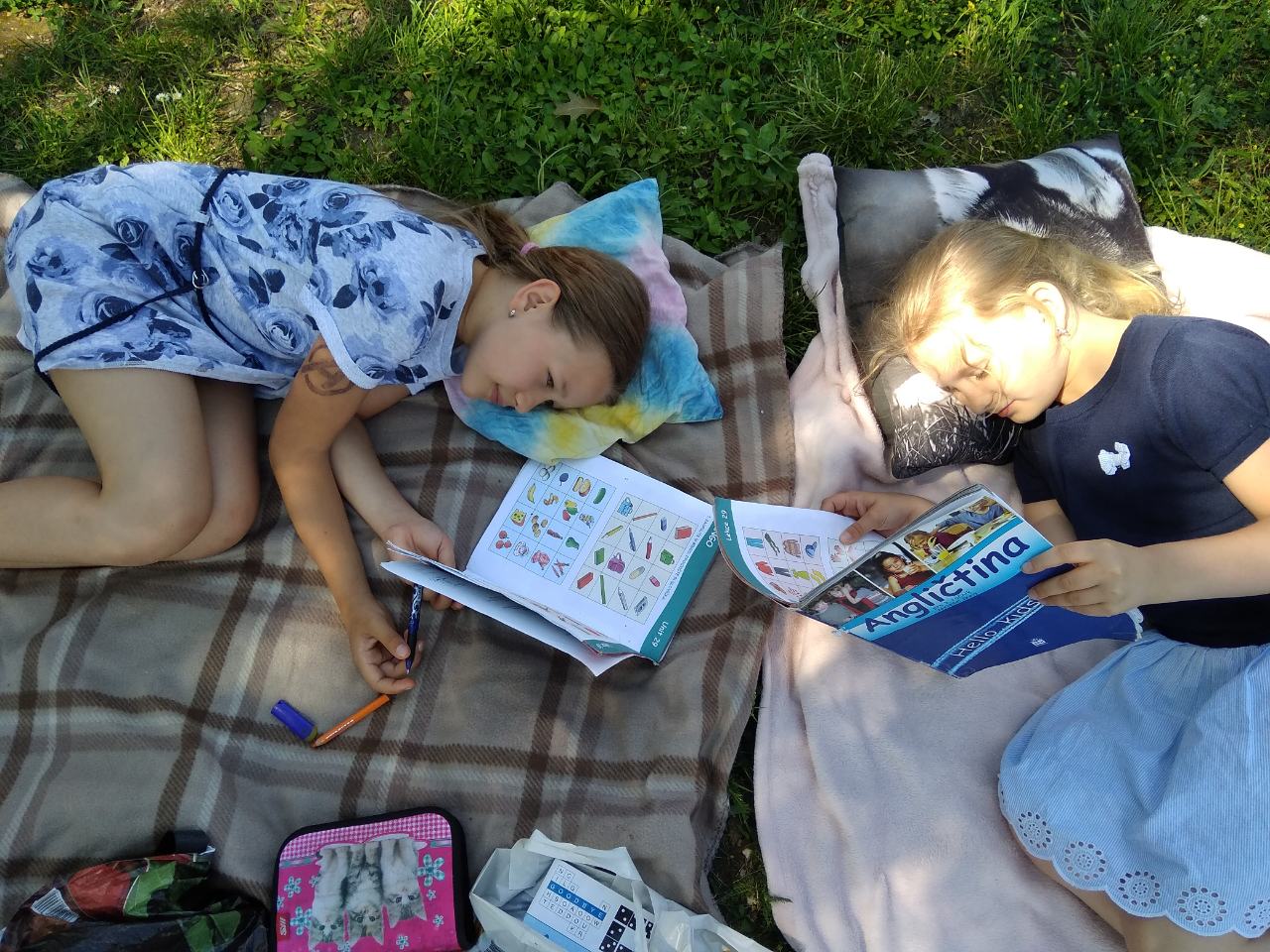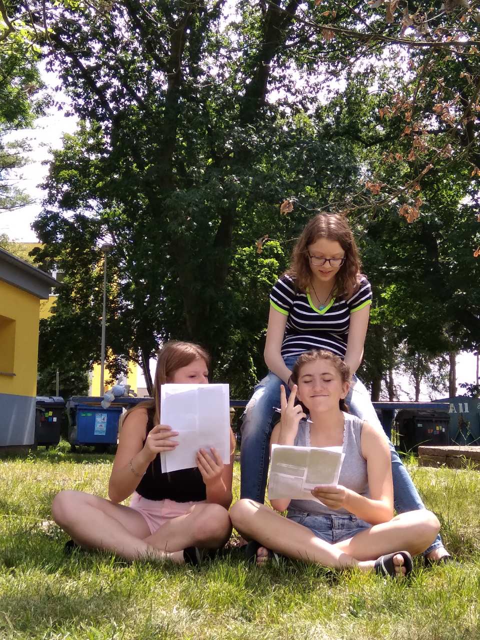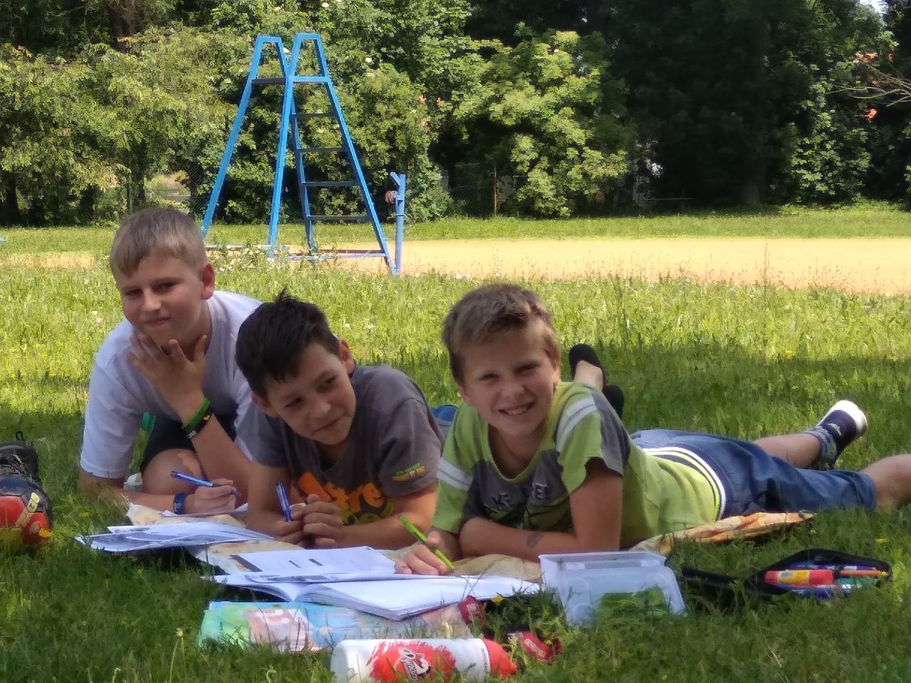 Takto jsme si užívali výuku venku na školní zahradě, žáci 3.A,B a 5.B spolu s žáky KOaj relaxovali na piknikových dekách a díky skvělé přípravě mňamek od rodičů nám šla práce pěkně od ruky, děti soutěžily o ceny, které jsme přivezli minulý týden z Anglie. Hledali jsme slovíčka,hráli Bingo, házeli míčem a pozorovali přírodu kolem nás...na závěr byla sladká tečka pro žáky KOaj, kdy jsme šli na místní výbornou zmrzlinu. Přejeme všem krásné prázdniny...už jsou téměř za dveřmi...
