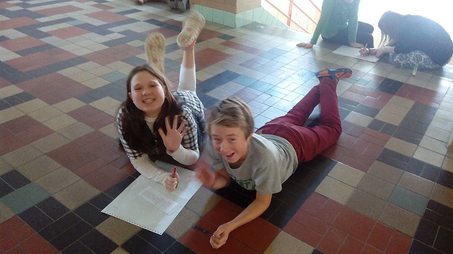 Písemná práce ve dvojicích probíhala tak, že jsme se rozdělili do dvojic holka, kluk. Po chodbě byly rozmístěné úkoly a ty jsme v té dvojici plnili. Na stanovištích na patře jsme hledali cvičení k vypracování. Úkoly byly z češtiny, takže jsme tam měli např.: doplňování y-ý/i-í v přísudku věty. Písemná práce byla ve stylu běhacího diktátu. Tento styl písemné práce je super. Takhle akční písemné práce máme pokaždé, když máme psát pís. práci. Byly i dva bonusy a sice takové, že jsme měli větu a její přísudek jsme měli změnit ze slovesného na slovesně jmenný a naopak. Moje dvojice splnila oba a doufáme, že to budeme mít správně. Mně osobně se tato pís. práce moc líbila.