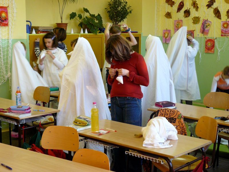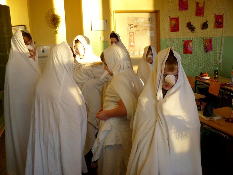 V úterý 13. prosince se po školních chodbách pohybovaly bíle zahalené tajemné postavy Lucií.