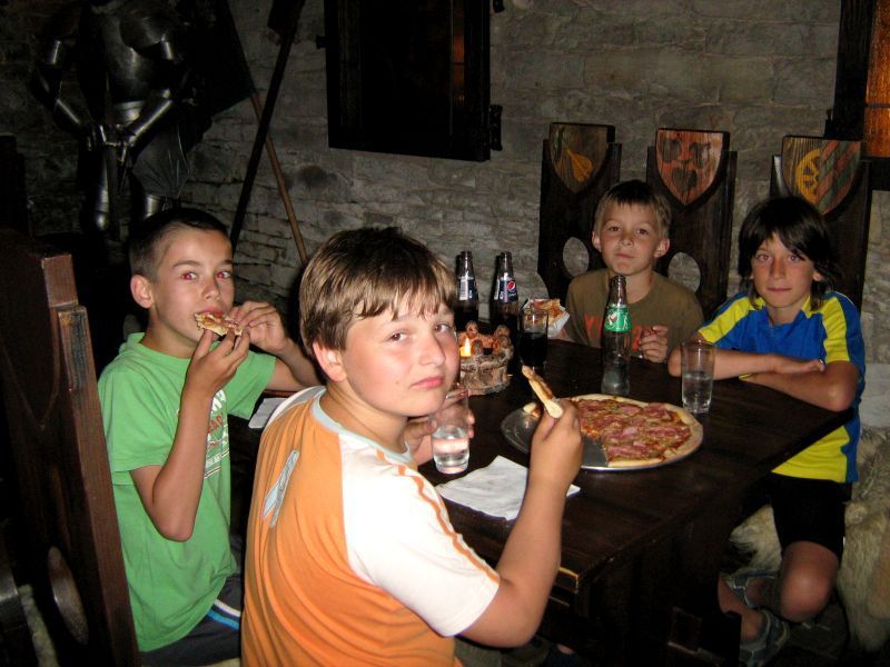Na čtvrtek 17. června 2010 jsme si s dětmi z kroužku angličtiny pro čtvrťáky objednali slunečné počasí a vyrazili jsme směr Hrochův Týnec. Zvolili jsme dopravní prostředky na vlastní pohon. S větrem v zádech a představou odměny v podobě výtečné pizzy z pizzerie U Žíznivého mnicha nám cesta pěkně ubíhala, i když jsme šlapali do kopce. V Kostěnicích nás potkala drobná kolize, Ivan Dzhuhan asi nějak hodně zabíral do pedálů, až kouká, že mu jeden pedál leží na silnici. Naštěstí jsme jeli právě kolem místního zemědělského družstva, kde nám ochotně pomohli a šlapku opravili. Děti si na pizze Mladý lord pochutnaly a do Dašic jsme frčeli jako vítr, neboť z kopce se to jede. Myslím, že si malí angličtináři výlet užili, a dokonce přišli s návrhem, že bychom mohli jezdit alespoň jednou za měsíc.