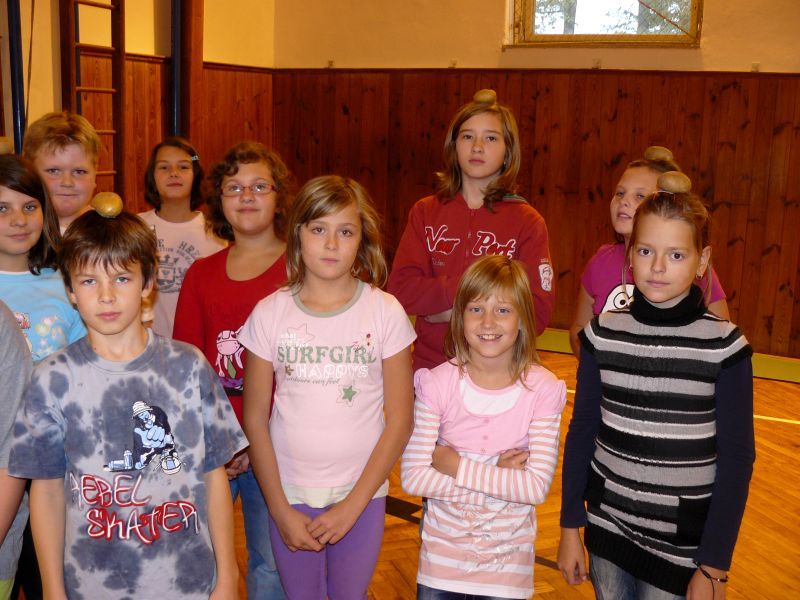 Naše vyučování jsme zakončili ve školní tělocvičně na bramborové olympiádě. Každý si vyzkoušel hod bramborou, skákali jsme z místa s bramborou mezi koleny, běželi jsme slalom s bramborou na hlavě a poslední disciplínou byla bramborová štafeta. Štafetou naše bramborování skončilo a my jsme se mohli vydat na podzimní prázdniny.