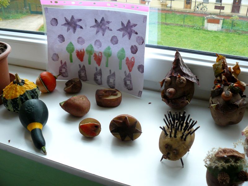 Bramborové vyučování jsme zahájili zpěvem a recitací o bramborách. Hledali jsme příbuzná slova, sestavovali další slova z jednotlivých písmen, vymýšleli věty o určitém počtu slov, doplňovali pětilístek, pomáhali počítat sedlákovi Vaňkovi, Daňkovi a Jankovi jejich sklizně brambor. Následovala přehlídka zvolených povolání. Ti, kteří si vybrali básníka, recitovali svou báseň o bramborách. Malíři předvedli svá bramborová umělecká díla a hospodáři nás podrobně seznámili s pěstováním brambor od zasázení až po sklizeň a uskladnění.