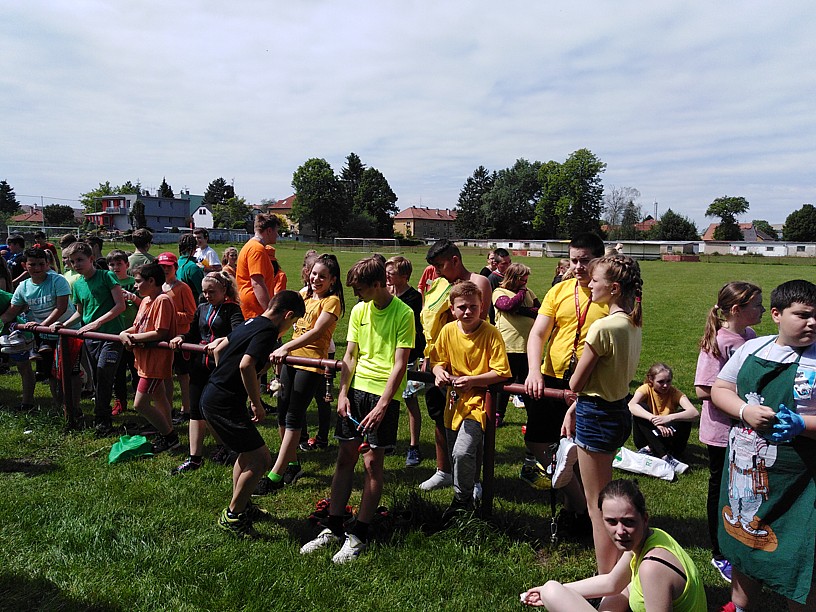 Dne 31. 5. 2019 se u nás ve škole konala akce pro děti ve sportovním duchu. Byli jsme rozděleni do barevných týmů, které spolu hrály fotbal, házenou, softball a vybíjenou. Společně se svými kamarády z 6. B jsme pro všechny připravili banány v čokoládě, které nám v pauze přišly vhod, dětem i dospělým. Podle ohlasů si myslím, že se Den dětí vydařil a užili jsme si spoustu zábavy. Rádi bychom poděkovali paní ředitelce za uspořádání hezkého dne, fotbalistům za zapůjčení hřiště, všem zaměstnancům základní školy a 9. třídě za organizaci.