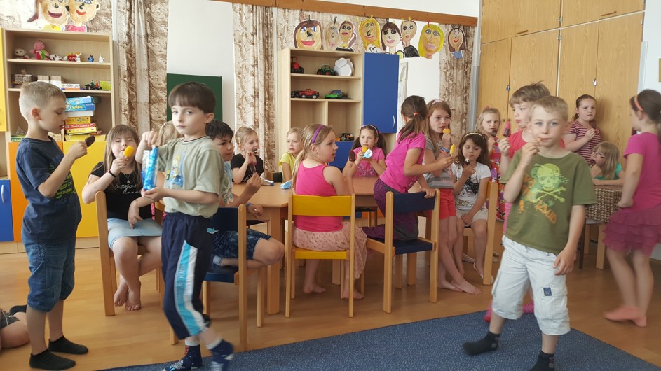 V pátek 2. června jsme v ŠD měli oslavu Dne dětí. Po vynikajícím obědě ve školní jídelně děti dostaly nanuky. Potom jsme šli na naši zahradu, kde čekala p. asistentka K. Svobodová a malovala dětem na obličej. Zájem byl obrovský, slíbila nám, že nás v červnu ještě navštíví. Sportovní dovednosti si děti vyzkoušely netradičně. Slečna vychovatelka M. Pilgerová přinesla slacklinu (lajnu) a děti se proměnily v provazochodce. Moc je to bavilo a ani tato zábava nebyla ve družině naposledy. Byl to krásný a slunečný den, doufáme, že si takových krásných dnů v naší družině užijeme do konce školního roku co nejvíce. Už brzy nás čeká štafetová hra.
