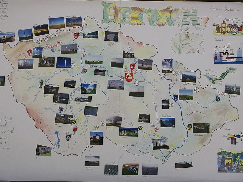 Cílem projektu s názvem „Elektrická energie v ČR“ realizovaném v 9. třídě v rámci hodin fyziky bylo zmapovat jednotlivé zdroje elektrické energie v České republice a vytvořit model minimálně 2 elektráren. Žáci se rozdělili do dvou skupin a pod vedením projektových manažerů (Honzy Endra a Matěje Hubálka) zpracovali své nápady na zadané téma. Jedna skupina nakreslila barevnou mapu České republiky, na které vyznačila velká města, řeky, pohoří a poté nalepila fotografie důležitých elektráren. Žáci druhé skupiny měli z počátku velké plány na papírovo - polystyrenový model s proudící vodou, funkčním osvětlením a rozhlasem, ale z některých svých nápadů museli časem ustoupit a věnovat se spíše stanovení správného měřítka staveb a lepšímu rozdělení práce ve skupině, protože jak už to bývá, najdou se i tací, kteří se raději jen vezou, než aby přiložili ruku k dílu.