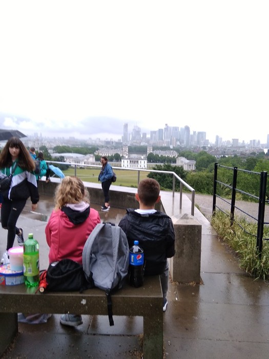 Nakonec jsme po dlouhém pátrání našli nultý poledník...přes deštníky, pláštěnky a brýle plné vody nebyl vidět... rozloučili jsme se z Londýnem, který jsme měli na dlani a dokonce i někteří si udělali piknik přes nepřízeň počasí i na lavičce...všichni jsme bouřlivě poděkovali velkým potleskem naší báječné průvodkyni a děkujeme tímto celé společnosti Ing. Zuzany Smoradové z Hodonína, která o nás pečovala s velkou péči a vyšla vstříc jakýmkoliv potřebám a přáním, perfektně měla vše pod kontrolou a s velkým srdcem předala tolik historických informací, které by se děti možná učily několik let ve škole...dokonce naše škola vyhrála cenu Vítěze ve znalostních soutěžích, které byly vždy v autobuse na cestě zpět a dostali jsme diplom...