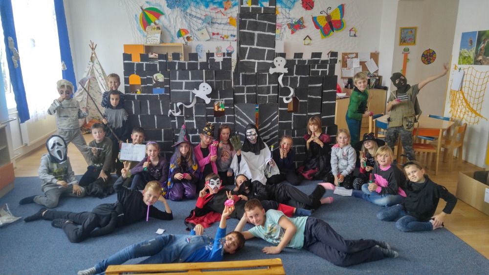 Už je to dávno, co byl hrad zvaný ,,Burgas" stvořen a osídlen strašidly. Protože tam žijí do dnes, je jejich úkolem strašit a hlídat hrad před pozemskou bytostí. Avšak strašit se může podle určitých pravidel, proto musí strašidla každý rok složit zkoušku. V den duchů se jim hrad Burgas uzavře a dovnitř je pustí pouze se správným zaklínadlem. I strašidla ve III.oddělení školní družiny takovou zkoušku složila. Jejich úkolem bylo vyřešit několik úkolů a pomocí kouzelného klíče složit správné zaklínadlo. I když to nebylo jednoduché, všem se to povedlo a všichni mohli projít za hradby hradu, kde na ně čekalo malé strašidelné překvapení.