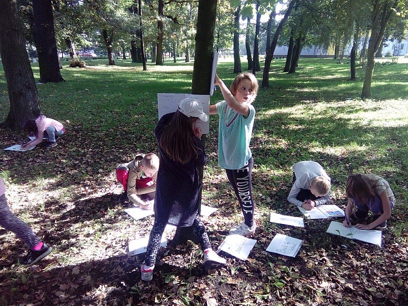 Dne 29. 9. jsme byli s angličtináři ze 4. A a B. v místním parku, kde jsme hledali anglická slova, otázky a odpovědi.