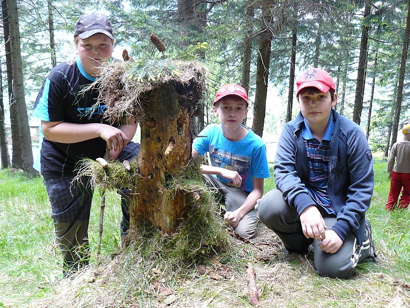 Po celý týden jsme se snažili co nejvíce využít čistý horský vzduch a sluníčko nejen při turistice. V okolí chaty jsme hráli různé hry s míčem, švihadly, obručemi, v lese stavěli příbytky pro zvířátka.