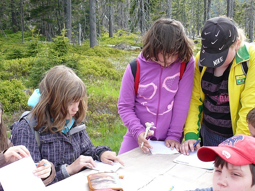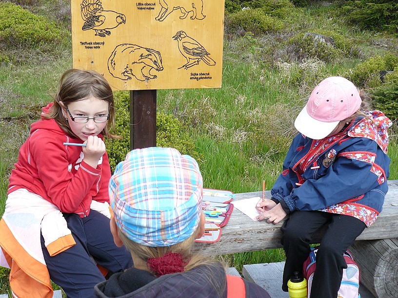 Ve středu jsme se vydali na prohlídku Černohorského rašeliniště. Každý si do batůžku přibalil psací potřeby, protože na dřevěných tabulích nás čekalo mnoho obrázků a informací o zvířatech a rostlinách této oblasti.