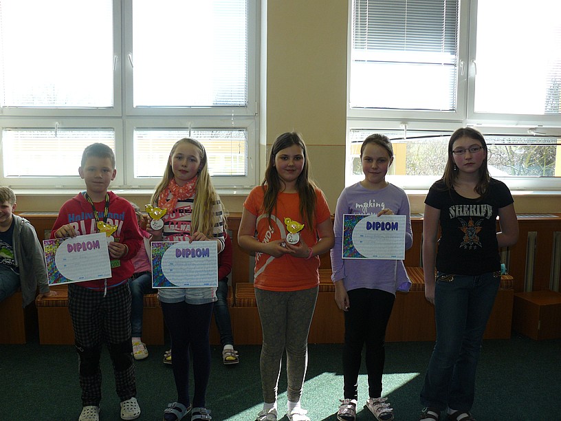 V 1. kategorii 3. místo obsadili žáci 1. B: Míša Křížek, Martin Nykodým, Patrik Jouza. Druhé místo získalo trio z 2. A: Lukáš Čapek, Jan Pavlíček, Tomáš Malinský. Zvítězila děvčata ze stejné třídy: Eliška Runštuková, Monika Nováková, Tereza Vacková.