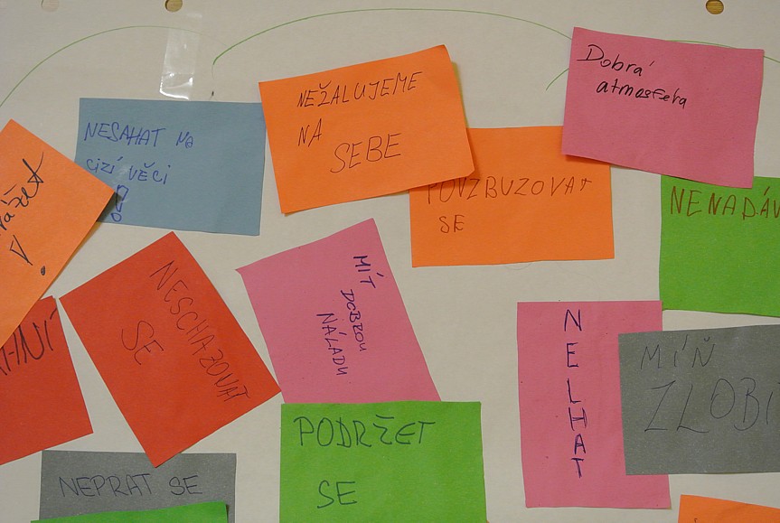 Hned dopoledne máme sezení s psycholožkou, kde si povídáme a vzájemně se seznamujeme. Je to velice zajímavé. Dozvídáme se spoustu nových věcí, které jsme o svých spolužácích nevěděli. Po obědě se vydáváme na výlet. Jdeme se podívat na vojenské bunkry, které prý nejsou daleko. Vyrážíme! I přes malé odchylky jsme nakonec dorazili na určené místo. Prohlížíme si bunkr a voláme domů rodičům, protože v budově, kde jsme ubytováni, ani v areálu není moc signál. Nakonec se vydáváme na ubytovnu. Tento den zakončujeme večeří, která není vůbec malá. Každý může sníst, co zvládne. Po večeři se můžeme jít vysprchovat. Večerka je v deset hodin. Do té doby si může každý dělat své aktivity. Ve středu se probouzíme všichni nedočkaví, co se bude dít dnes. Oblékneme se a vyrážíme na snídani. Poté máme další sezení s psycholožkou. Přijde mi, jako kdybych se každou aktivitou svým spolužákům přibližovala víc a víc. Probíráme, jak se cítíme ve třídě a jak co zlepšit. Děláme spoustu zajímavých aktivit. Například kreslíme loď, na kterou se má každý nakreslit na takové místo, jak se v naší třídě cítí, jaké si myslí, že má místo v kolektivu. Bylo velice zajímavé vidět, jaké si kdo zvolil místo. Jedna z dalších aktivit byla ta, že jsme měli nakreslit strom a napsat vlastnosti, které si myslíme, že jako třída máme, nebo jaké bychom chtěli mít. Podle této aktivity bylo vidět, jak kdo vnímá naši třídu jako celek. Bylo toho ale mnohem víc.