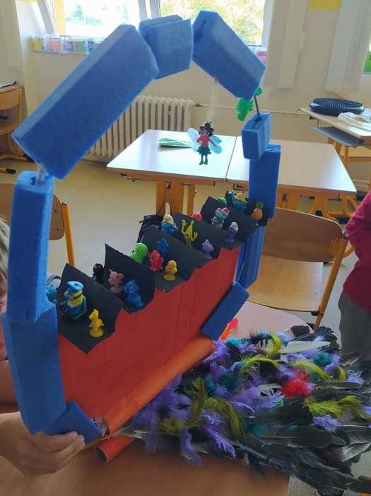 V pátek 20. 9. se znovu sešly pracovní skupiny žáků na své druhé schůzce. Z donesených věcí měly děti za úkol během plánovaných 3 vyučovacích hodin vytvořit 3D model svého dopravního prostředku budoucnosti a plakát. Ten popisuje fungování dopravního prostředku (způsob pohonu, ovládání, maximální rychlost, počet pasažérů, cena atd.). Některé nápady byly ovšem natolik složité a propracované, že byla v průběhu přidána ještě 1 vyuč. hodina na dokončení a úklid.