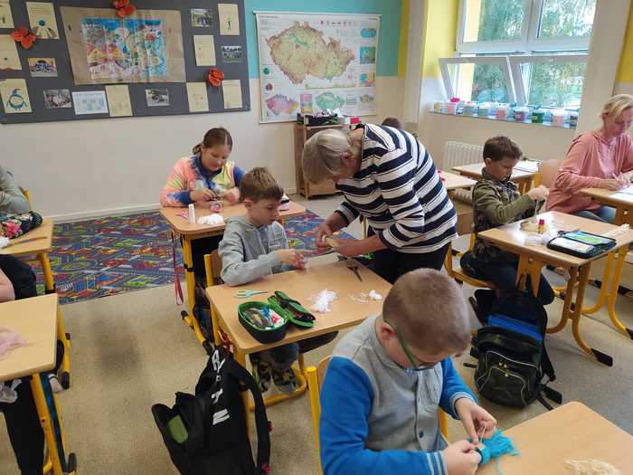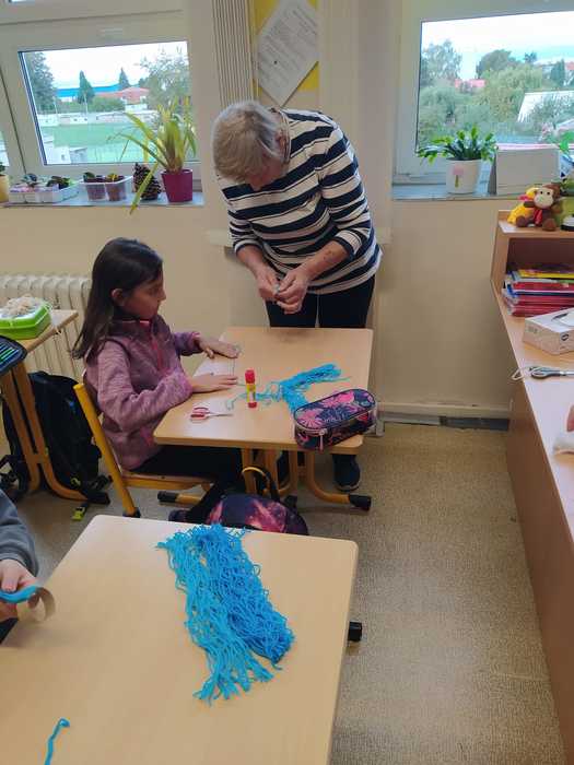 V rámci našeho celoškolního projektu a oslavy Mezinárodního dne seniorů k nám do školy zavítaly první odvážné babičky. Ve 2.A a ve 4.A učily žáky plést a vyrábět skřítky z vlny. Pod vedením šikovných rukou šla žákům práce krásně od ruky. Děkujeme.