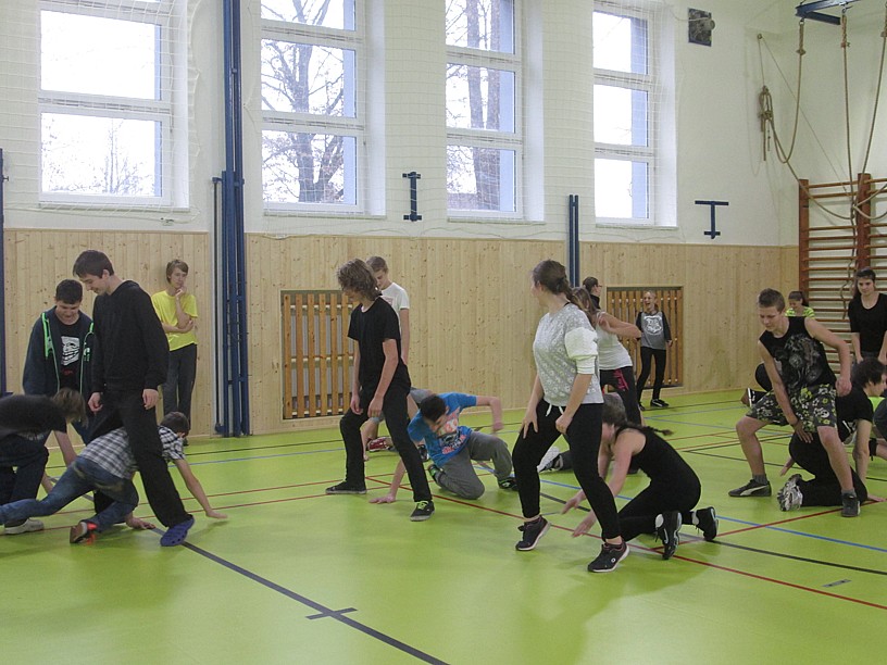 V rámci tělesné výchovy jsme se rozhodli, že výuku obohatíme o něco nového. Domluvili jsme se s lektorem Jaroslavem Havelkou, který vede taneční skupinu „Dancing Crackers“ www.dancingcrackers.cz. Jarda jezdí do škol a učí žáky taneční triky a sestavy. V pátek 27. 11. dorazil k nám do školy a o týden později ještě jednou. Máme velkou radost, protože se akce postupně zúčastnila celá škola. Dvě třídy měli vždy společně dvouhodinovku tancování, triků a pohybu. V průběhu akce jsme pořídili spoustu hezkých fotografií, které si můžete prohlédnout na stránkách školy nebo na sportovní nástěnce.