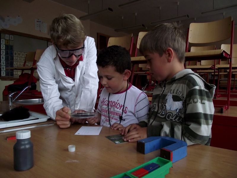 Začal nový školní rok a naše škola přivítala 26 nových prvňáčků. Aby se ve škole lépe zabydleli a rozkoukali, připravili si pro ně žáci IX. třídy na středu 7. 9. naučnou stezku po škole s názvem „Expedice po ZŠ Dašice“, při které je provedli sedmi velmi zajímavými zastávkami. Jednotlivé zastávky byly umístěny v odborných učebnách, kde si prvňáčkové mohli vyzkoušet práci s počítačem, procvičit angličtinu na interaktivní tabuli v jazykové učebně, poznat vycpaná zvířátka a složit model člověka v učebně přírodopisu, zahrát si na kouzelníka či elektrikáře v učebně chemie a fyziky, namalovat si obrázek v učebně výtvarné výchovy, protáhnout tělo na překážkové dráze v tělocvičně a nebo si pěkně zazpívat a zahrát na všelijaké roztodivné hudební nástroje v učebně hudební výchovy. Na této hudební zastávce prvňáčky nejvíce zaujala hra na bubny, kterou si všichni náramně užili. Ovšem pokud indiáni pomocí bubnů přivolávají déšť, máme se díky našim prvňáčkům na podzim v Dašicích na co těšit:-)