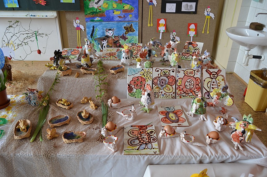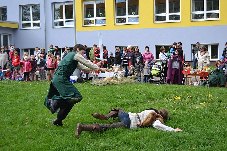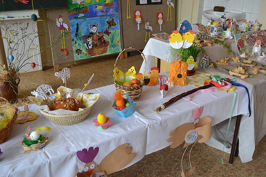 V pátek 10. 4. 2014 v odpoledních hodinách zahájili p. ředitelka MŠ Mgr. Zlata Závůrková a pan starosta Města Dašice Mgr. Petr Zikmund Velikonoční slavnosti, které se konaly v prostorách místní školky a školy. Počasí nám přálo a po vystoupení dětí z MŠ začal plánovaný jarmark, který mohl díky slunečnu proběhnout venku. Návštěvníci mohli vidět souboj šermířů, děti si zařádily na nafukovacím hradu, mlsné jazýčky jistě neodolaly a zkusily, jak chutná trdelník. V prostorách školy si děti mohly v rámci velikonočních dílniček vyzkoušet svůj um a trpělivost při zdobení perníčků, výrobě jarních motýlků, kuřátek a zdobení velikonočních vajíček. Sportovně založení odvážlivci zkusili „trhnout“ rekord ve skoku přes švihadlo na čas – našli se i tací, kteří se nespokojili se svým pátečním výkonem v sobotu přišli překonat sami sebe. Esteticky založení návštěvníci se mohli pokochat výrobky dětí obou zařízení na velikonočně zaměřené výstavě prací žáků ZŠ a dětí MŠ. Jedním z hlavních bodů celého programu bylo vystoupení žáků ZŠ s programem na téma celoškolního projektu „Cestujeme po Evropě“. Cílem bylo objasnit a předvést, co že to ten projekt je, což se nám, myslím, podařilo.