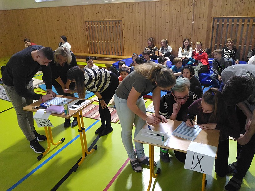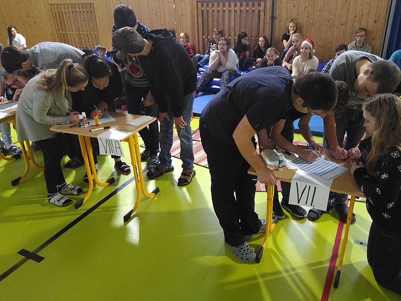 V pátek 21. 12. 2018 se sešli žáci 2. stupně v tělocvičně, aby změřili své znalosti z celoškolního projektu 100 let české státnosti. Z pěti smíšených čtyřčlenných družstev reprezentujících vždy svoji třídu se nejlépe umístili žáci 8. ročníku, na 2. místě skončili výborně připravení sedmáci a o pouhý půl bod za nimi 9. třída.