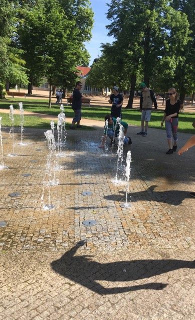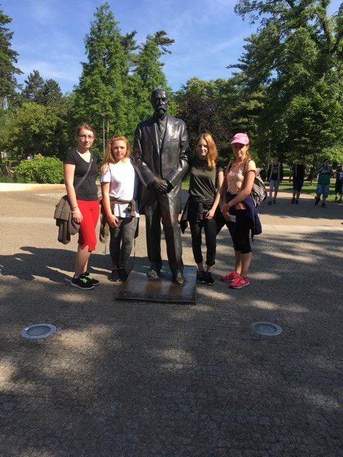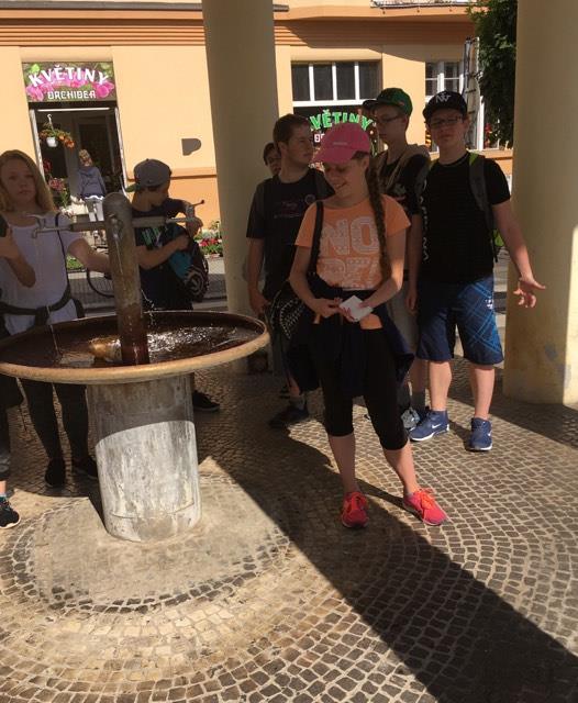 Prošli jsme se po rozkvetlé kolonádě, ochladili u vodotrysků, pizzu a zmrzlinu jsme zapíjeli léčivými prameny. Na náměstí jsme se pozdravili s Jiřím z Poděbrad, patronem našeho výletu i celodenní soutěže. Poté nás čekala návštěva poděbradského zámku, kde jsme si prohlédli reprezentativní místnosti, zahradu, hladomornu a další tajemná zákoutí. Vyzkoušeli jsme si, jak se učí studenti na univerzitě, a bojovali jsme o flash disky ve vědomostní soutěži. Protože bylo opravdu horko, svezli jsme se po prohlídce vláčkem na soutok Labe s Cidlinou, kde jsme nakrmili kachny chlebem a řízky, které jsme jim celou dobu šetřili. Odtud jsme došli do Libice, kde stávalo středověké slavníkovské hradiště obestřené krvavou pověstí. Na konci výletu obdržel každý účastník tu největší křupavou oříškovou medaili, jakou v Poděbradech upekli.